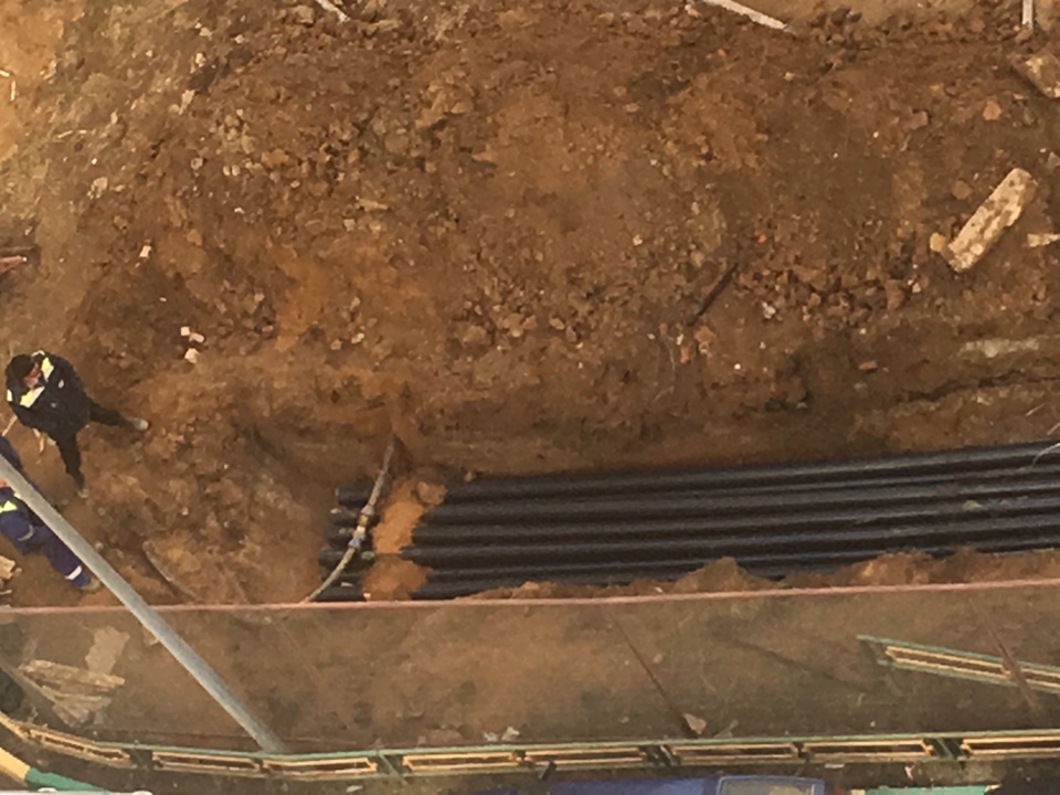 #37377Между 22-ым и 21-ым?Вдоль 21 корпуса выкапывают какие-то коммуникации.