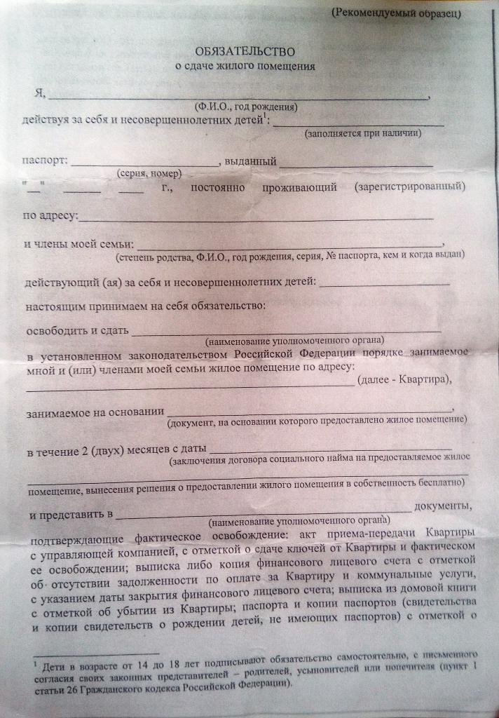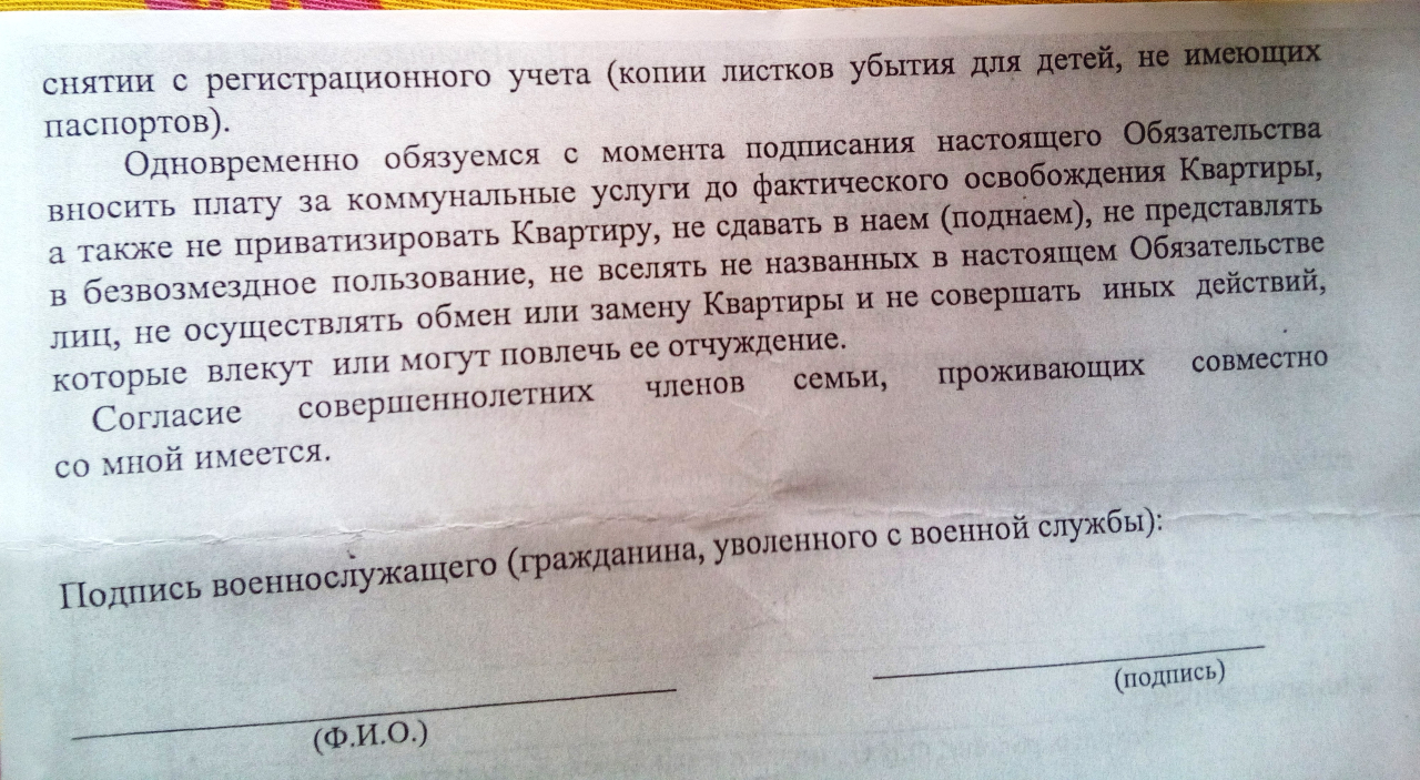 #37408Нет. А служебку сдавать только после переезда в квартиру в течении 2 месяцев и потом получение оригиналов документов на оформление квартиры в РР.Простите, и что там?. Сдать служебку немедленно до получения документов на квартиру или после получения доков - срок на сдачу 2 месяца дается?QR_BBPOST Взял образец нотариального обязательства, ибо в недостатках указано выделенным шрифтом "ПО ОБРАЗЦУ"