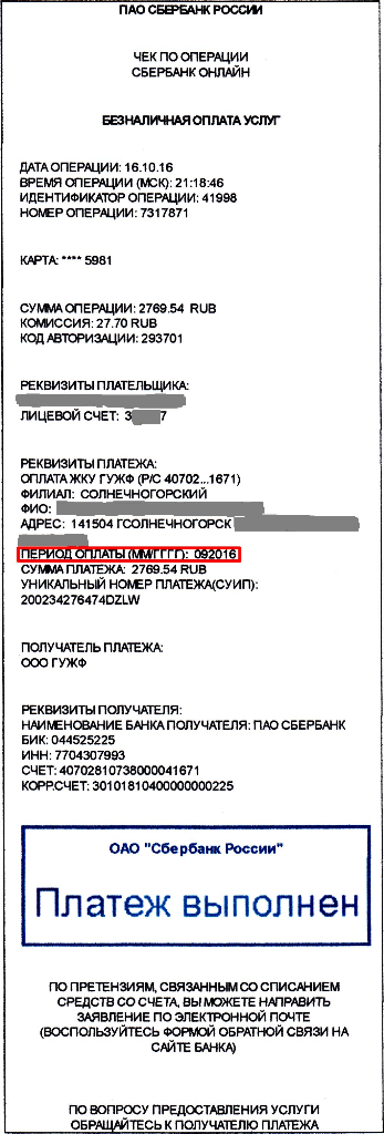 #16737Выкладываю без персональных данных скан квитанции об оплате ЖКУ, сформированной ранее через сервис "Сбербанк-онлайн".