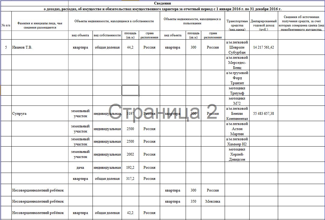 Согласно налоговой отчетности, семьи руководители имущественного и строительных комплексов МО РФ устойчиво возглавляют рейтинг годовому доходу, не стал исключением и этот год: http://mil.ru/files/morf/income2016.xlsx