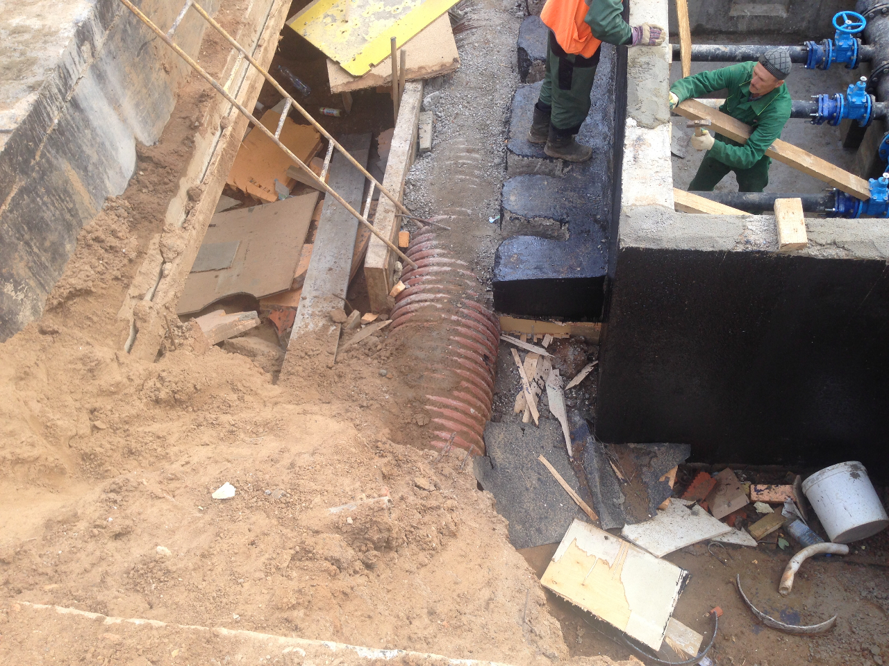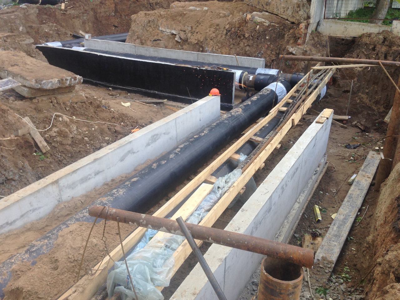 Отопление- МОЭК участок труб под дорогой- зачищали сварку, готовят сегодня к сдаче стыки.