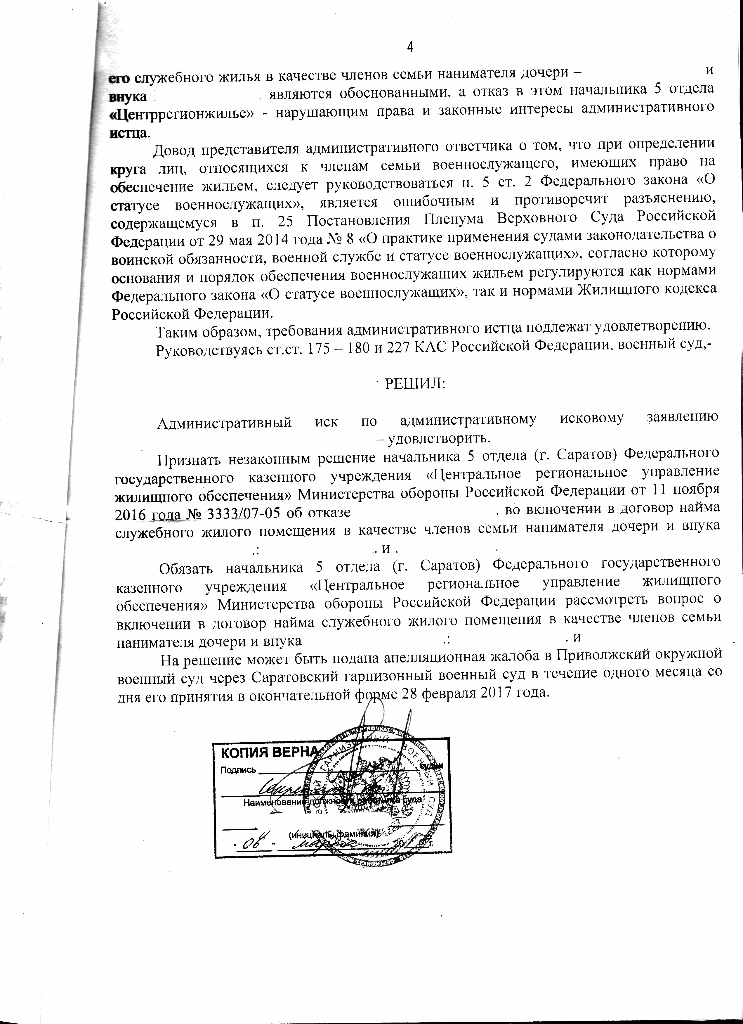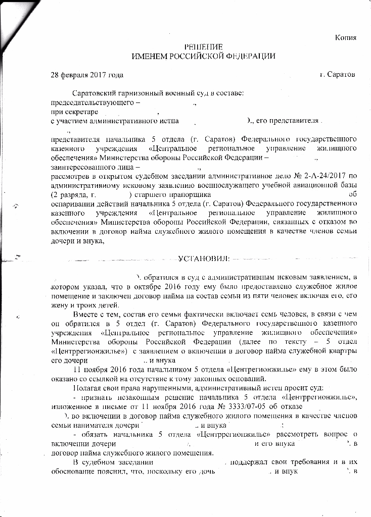 День добрый, уважаемые форумчане, мне пришло определение районного суда на мое административное исковое заявление (о признании решения начальника Тамбовского отделения ФГКУ ЗРУЖО неправомерным, при подсчете размера жилищной субсидии,