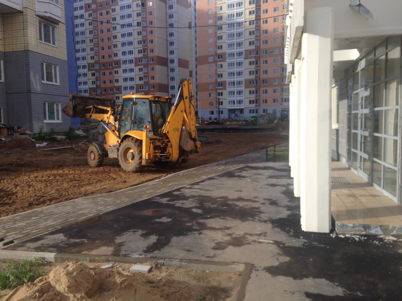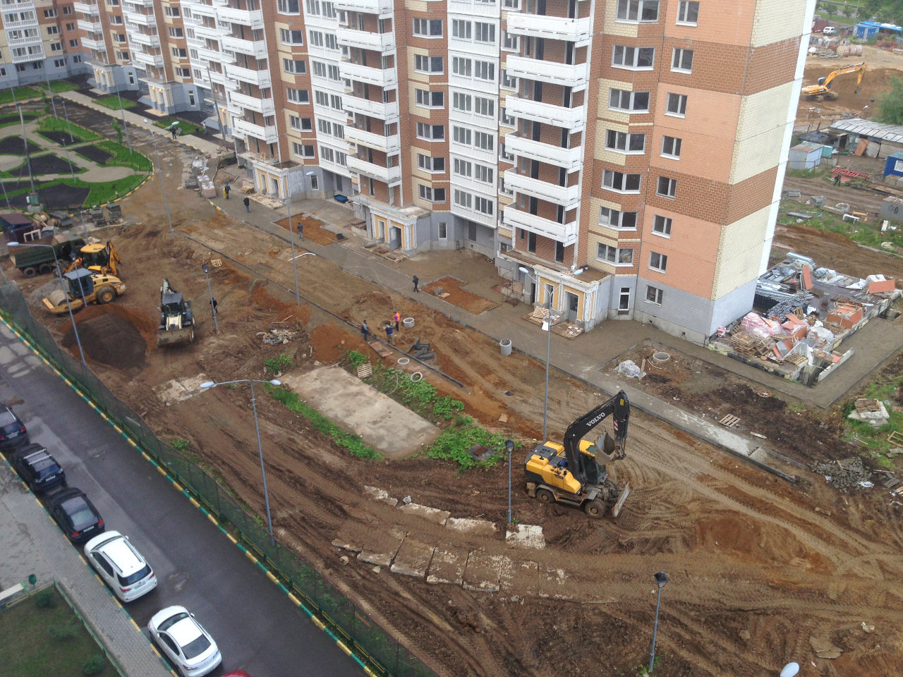 #39264Похоже, это фотка с к.15. Так ОНИ бы сначала ТП (трансформаторную подстанцию) на пустующий фундамент поставили, да кабели протянули к корпусам, а потом уже всякими там дорожками занимались. А то плитку ещё пару раз перекладывать придется после прокладки электрокабелей. Хотя если главная цель - ИКД с закапыванием денег, тогда все правильно...