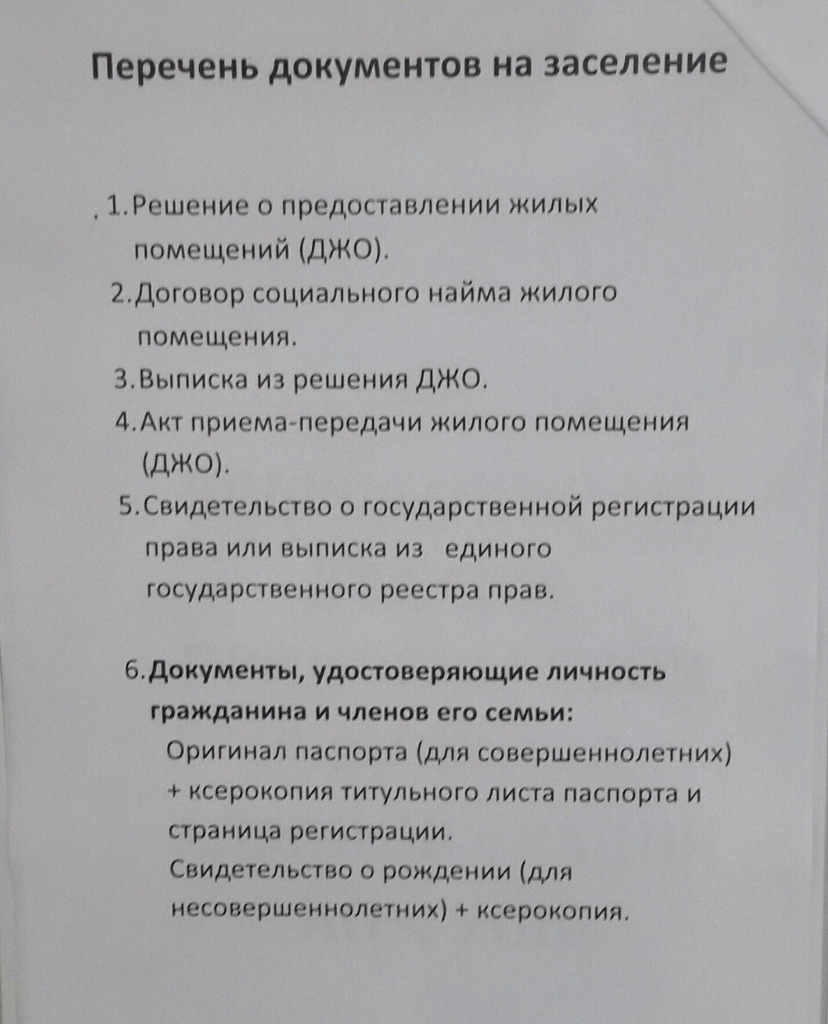 Может кому понадобится вот список документов для заселения (свидетельство о собственности не требовали)