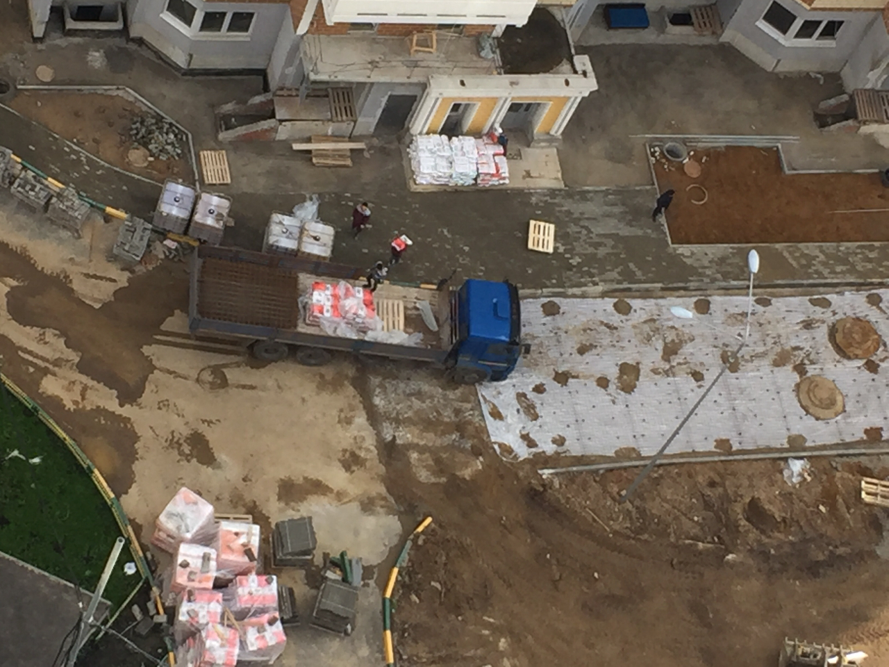 Похоже, это фотка с к.15. Так ОНИ бы сначала ТП (трансформаторную подстанцию) на пустующий фундамент поставили, да кабели протянули к корпусам, а потом уже всякими там дорожками занимались. А то плитку ещё пару раз перекладывать придется после прокладки электрокабелей. Хотя если главная цель - ИКД с закапыванием денег, тогда все правильно