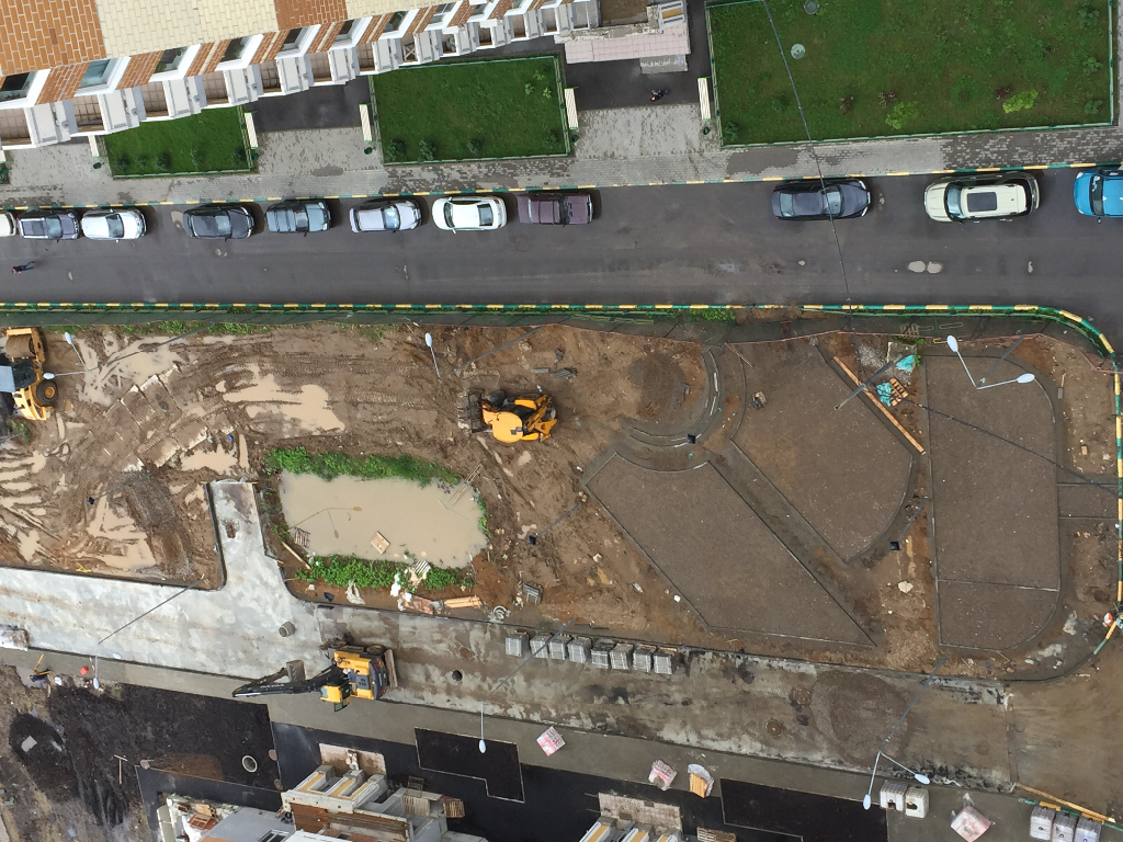 Дождь не даёт заливать дорогу у 2 корпуса но очертания уже видны.