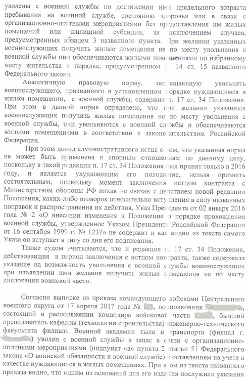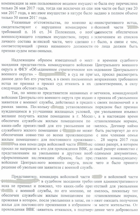 продолжайте, "была лишь предоставлена квартира решением командира части, с которым которое я не оспаривал, в которой я проживал"