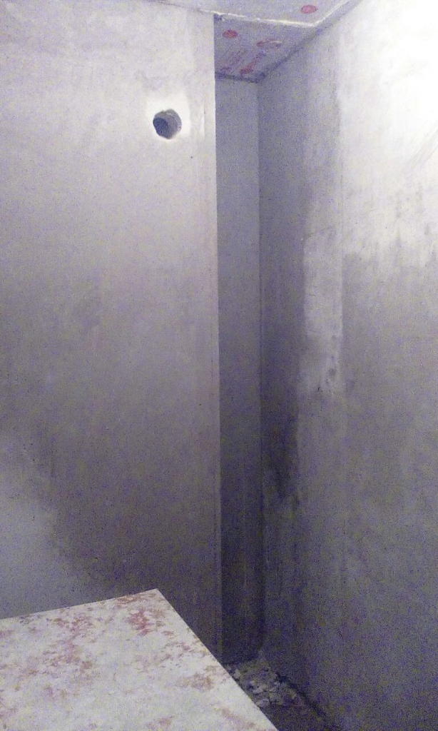 Исходя из этого, для того чтобы поднять пол в коридоре, мне нужно по всей квартире на три сантиметра его налить. Желания, и прежде всего финансовых возможностей, нет. Поэтому я делаю слой гидроизоляции под плиткой. Черновой пол в коробе стояка канальи не трогаю. Порожек делаю из плитки. От моих возможных протечек у меня стоит аквастоп. От соседей сверху к сожалению ничто не спасёт. Я даже не знаю, кто они и где они.