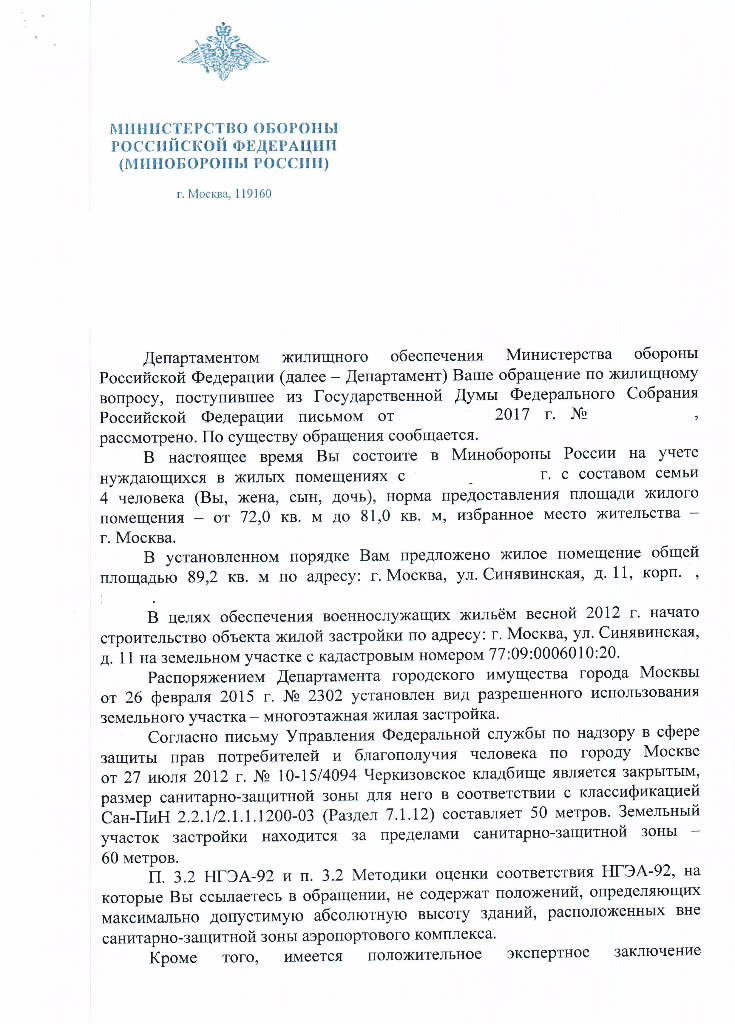 #31952вопрос был простой... кто нибудь писал или нет. И что написали в ответ. Но всеравно ответ то какой то должен быть... Раз есть ответы оф. лиц по кладбищу, по промзоне, по шуму и шереметьево, по передаче или не передаче земли...давайте напишу, что написать и фамилию скажите .. пишу ..