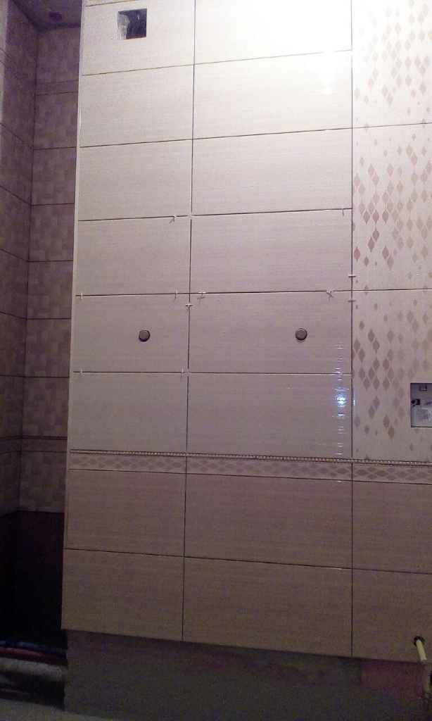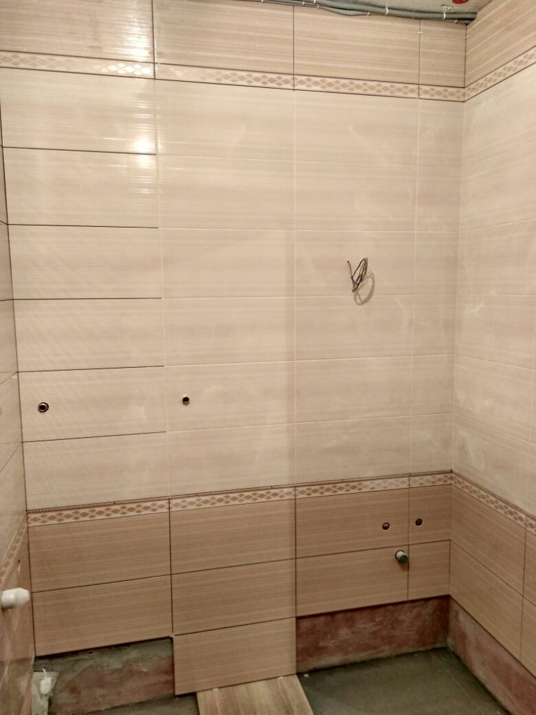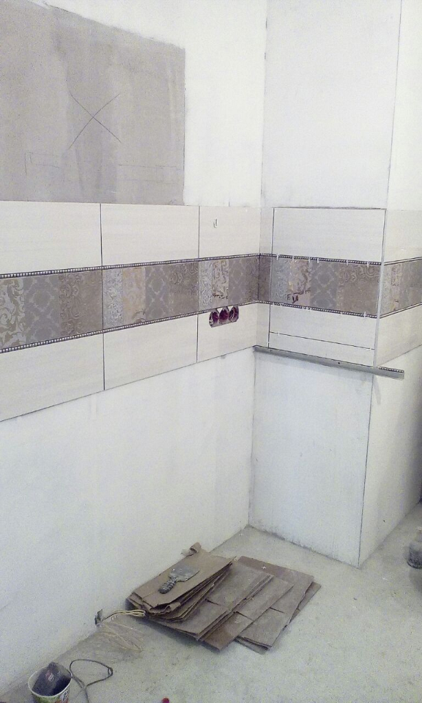 После нанесения гидроизоляции постелили плитку
