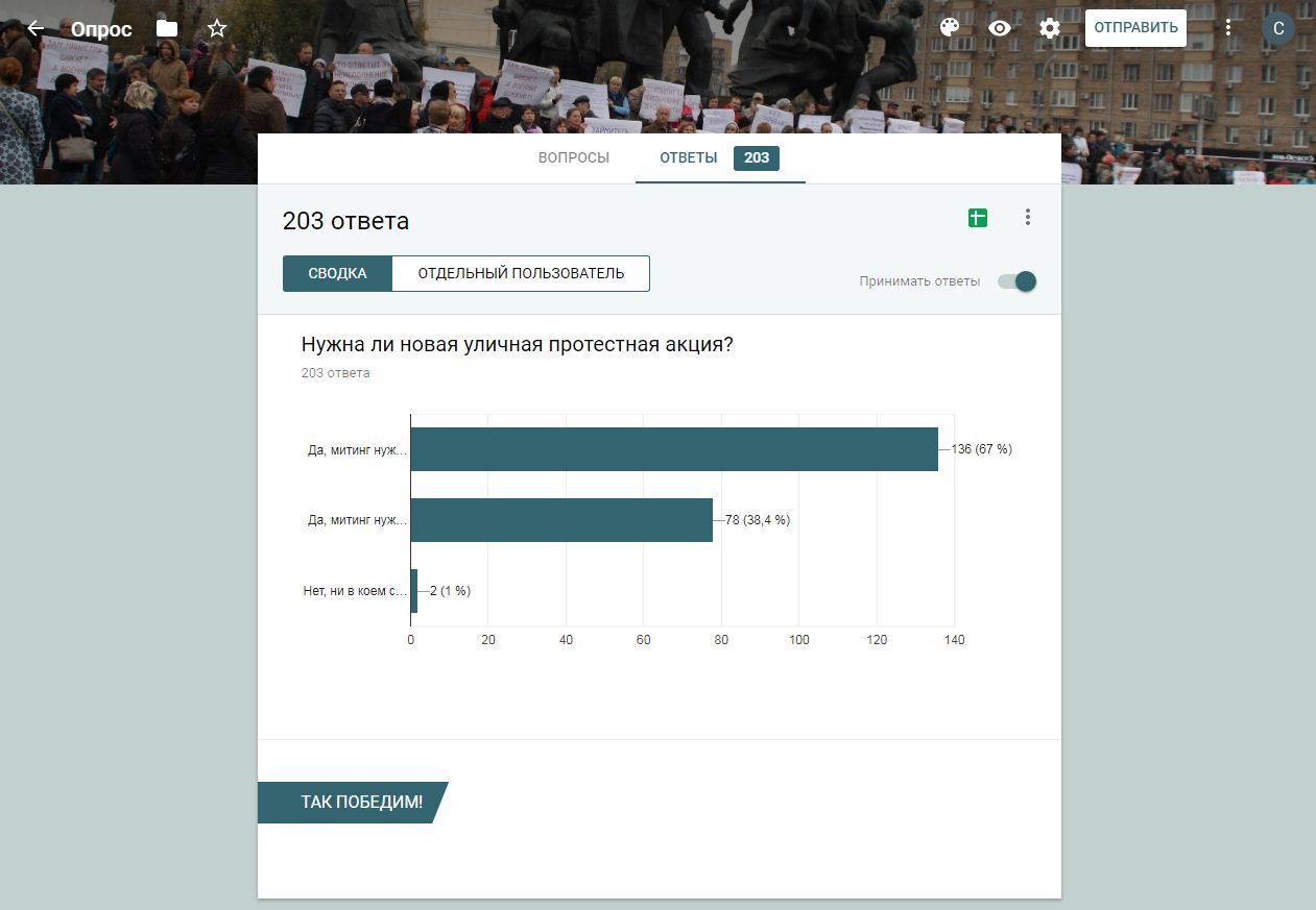 78 человек считает необходимым проведение дальнейших уличных протестных акций, но по объективным причинам присутствовать не смогут.