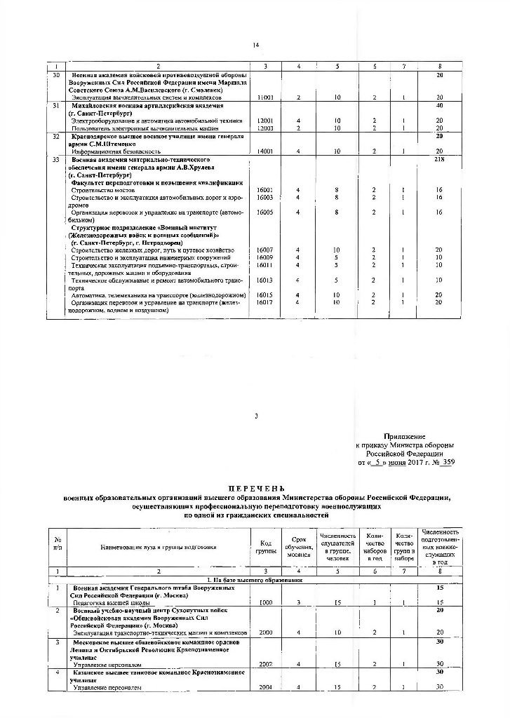 Когда было ОПУБЛИКОВАНО приложение №359 от 05.07.2017года с перечнем вузов на переподготовку на сайте МО?