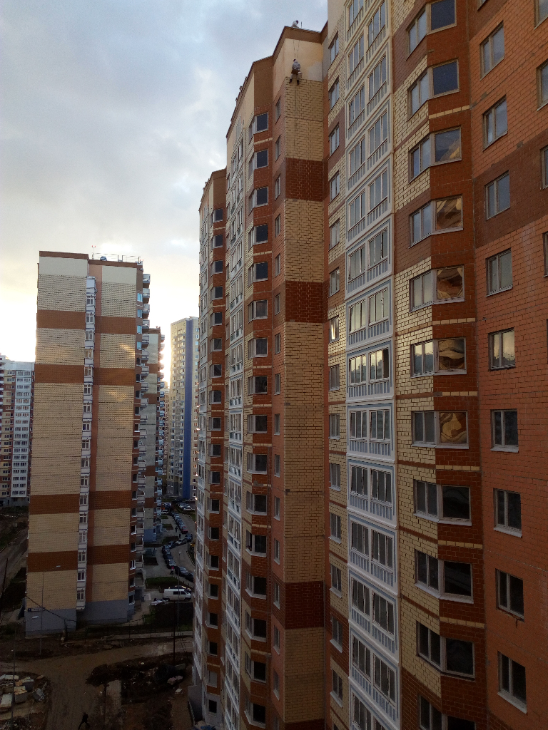 #42732В 8к ведутся малярные работы несколькими бригадами, по словам рабочих еще дней 10. Альпинисты висят, человек 4-5 одновременно красят фасад.