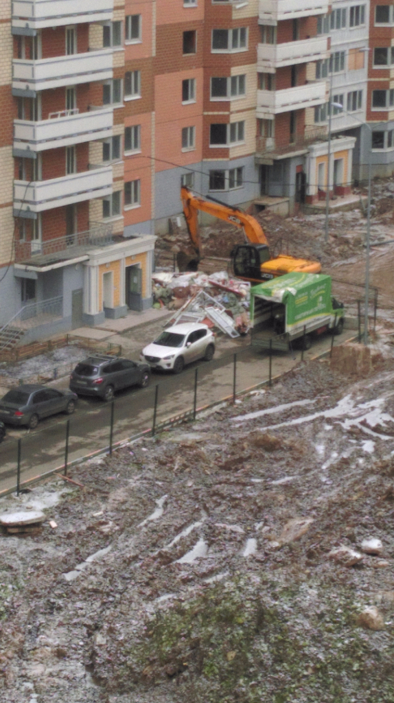На дневном фото с контейнером видно, "абзац" этот будет расти с увеличением жильцов. 5 800 машиномест остались в головах, а не на местности. Сегодня мЕн али вумЕн на красной маздЕ припЁр мерс, так и не уехали люди куда хотели.