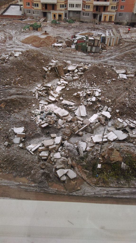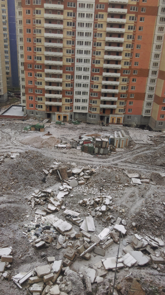 5. Жильцы пытаются убирать строительный мусор, но не все такие - у 6го корпуса свалка возле крайнего подъезда растет