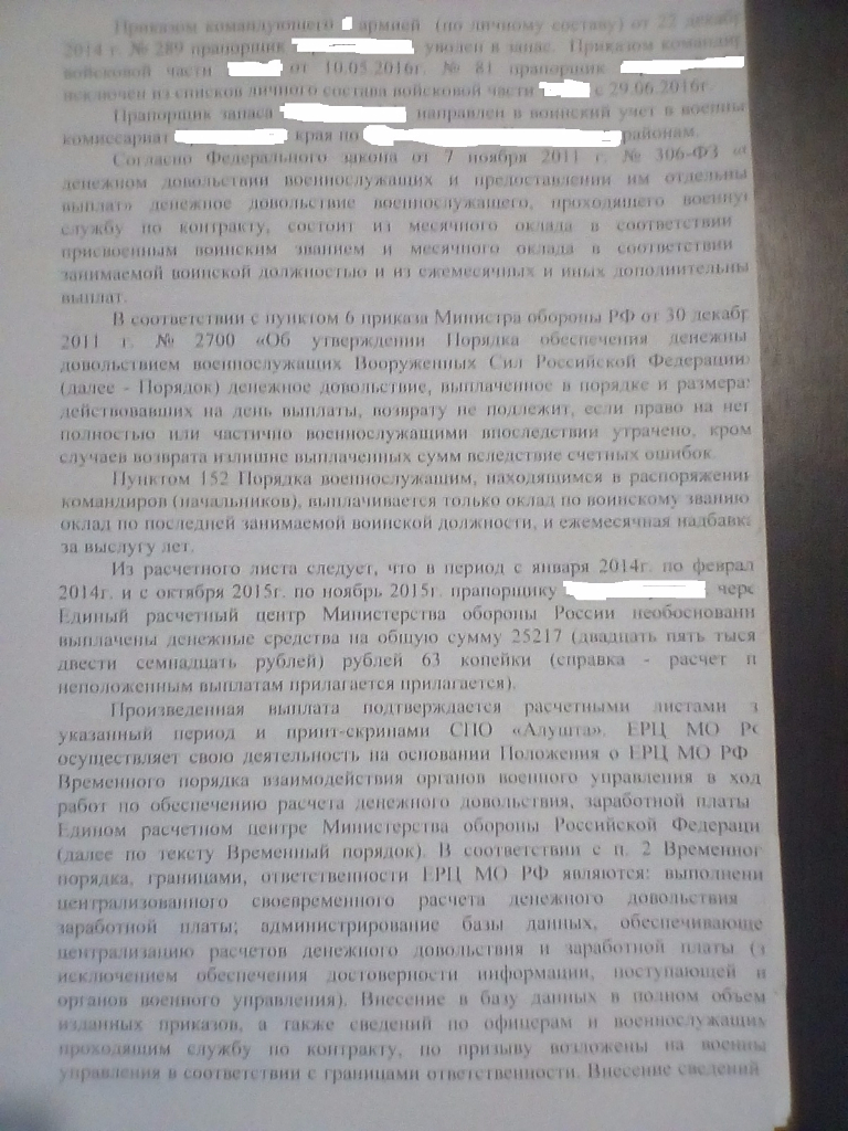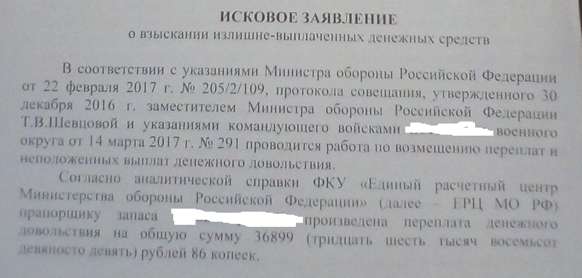 #4315Просмотрел бегло. В иске нет как образовалась переплата?QR_BBPOST Вообще не утруждали себя объяснением переплаты денежного довольствия.