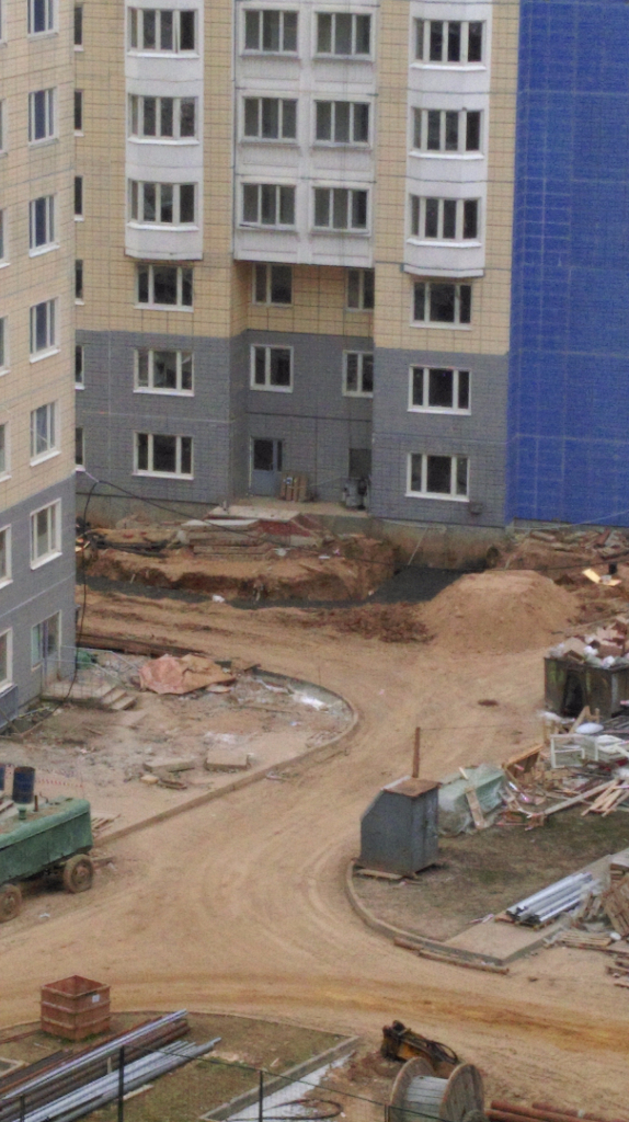 Нет, у первых подъездов 8к не раскопано, просто они завязаны на общую «трассу» которая идет через весь «долгострой» начиная от 16го – 4к –7к далее через угол 8к идет к 15 к – вдоль 5к – подходит к 1(24)к.QR_BBPOST В группе вконтакте проскакивала информация, что 8-й корпус могут сдать не полностью, а только половину, выходящую на лошадок. Якобы, к первым подъездам не будет подъезда, ибо все перекопано на неопределенный срок.