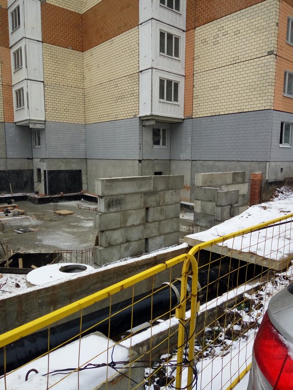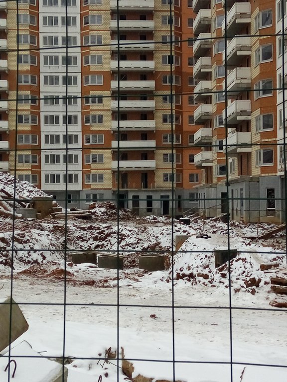 В том году побывали с товарищем по "несчастью" в его готовой квартире в 7 корпусе - стекла в окнах на первых этажах кое-где разбиты, обои в квартирах в ржавых пятнах от сырости и местами отошли от стен. Слив с крыши ввиду отсутствия канализации организован через трубы воткнутые в сливные стояки и выведенные на улицу через открытые круглый год окна последних квартир. Это конечно "шедевр" инженерной мысли строителей!