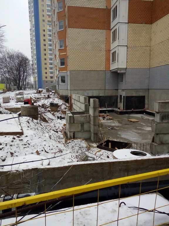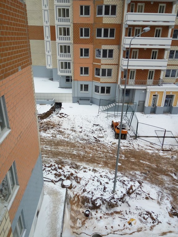 В том году побывали с товарищем по "несчастью" в его готовой квартире в 7 корпусе - стекла в окнах на первых этажах кое-где разбиты, обои в квартирах в ржавых пятнах от сырости и местами отошли от стен. Слив с крыши ввиду отсутствия канализации организован через трубы воткнутые в сливные стояки и выведенные на улицу через открытые круглый год окна последних квартир. Это конечно "шедевр" инженерной мысли строителей!