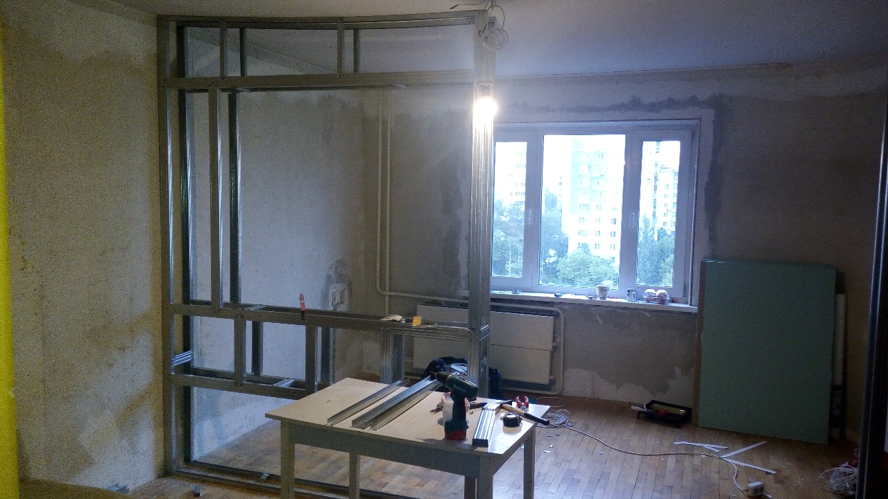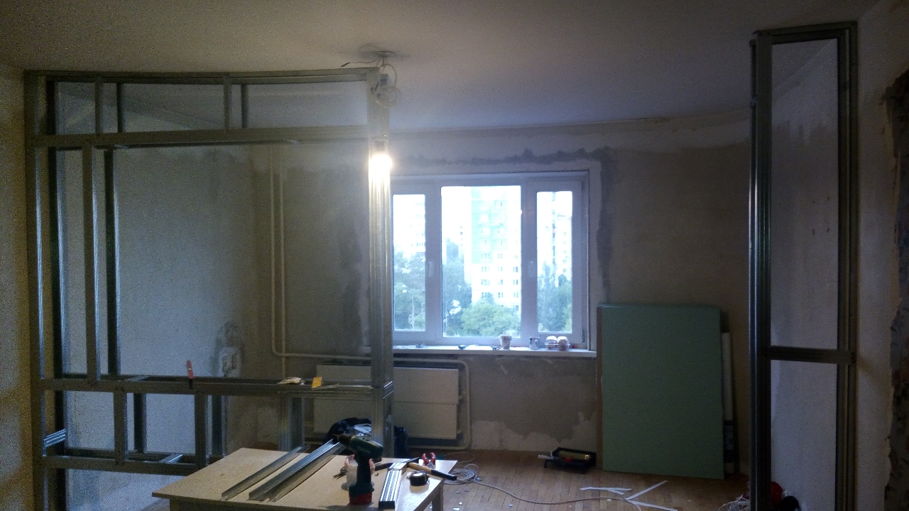 #49Добрый день. Выкладываю оставшиеся фото с ремонта трешки. Фото двушки сделаю позже. Сейчас на объекте готова электрика, работа по плитке и шпаклевка идет полным ходом. Так же сделан косметический ремонт комнаты, где добавили розетки и возвели перегородку с подсветкой. Сделаны натяжные потолки.