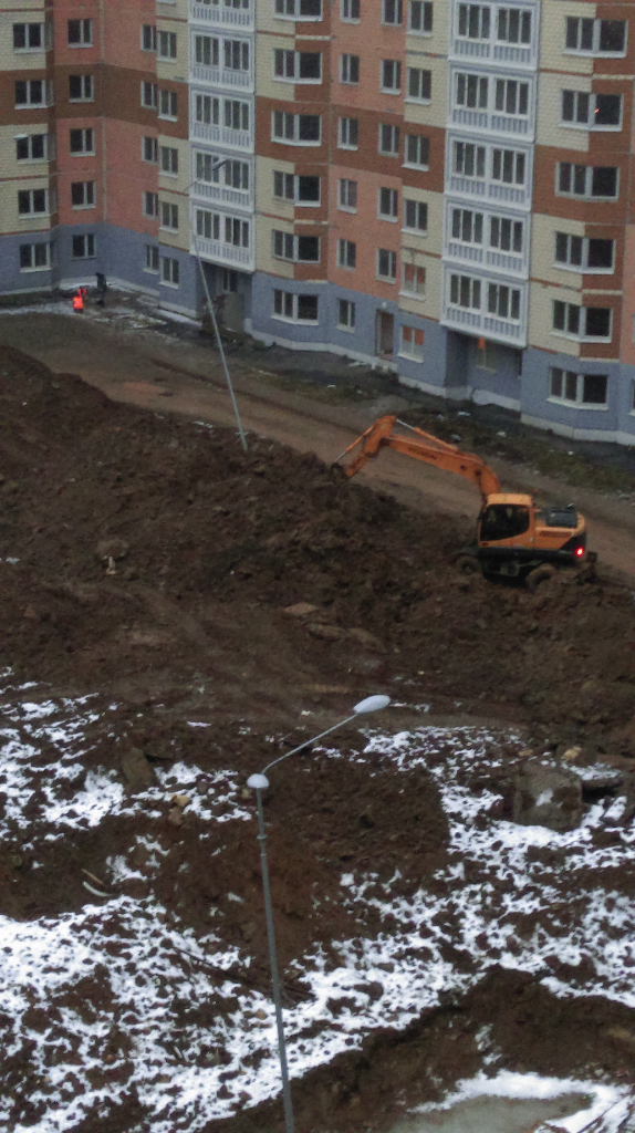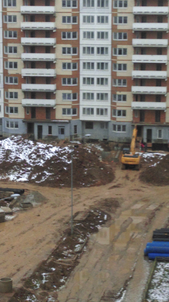 - 24й корпус на ИТП подвижек немного, заложили кирпичом часть проемов, напротив (ул. Левобережная) через дорогу работал кран «Ивановец» тягали конструкции, бригада вела сварочные работы, внутри двора активная работа в траншее возле 2х подъездов ближе ко 2му корпусу;