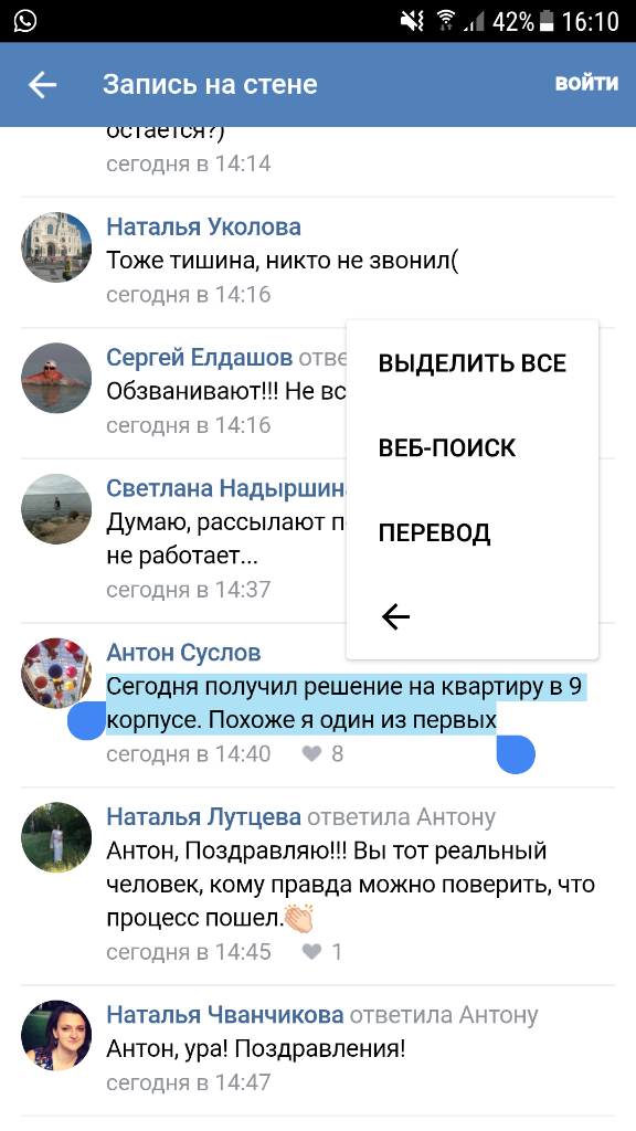 #45503Зависть- не корысть! Говорю, что думаю! Радуюсь и за новых жильцов( доброй завистью) и за будущих «сидельцев» ( не завидую)Да, видимо Вы не 9 корпус ждете, раз с таким негодованием говорите. Не умеет у нас народ за других радоваться, одна зависть.
