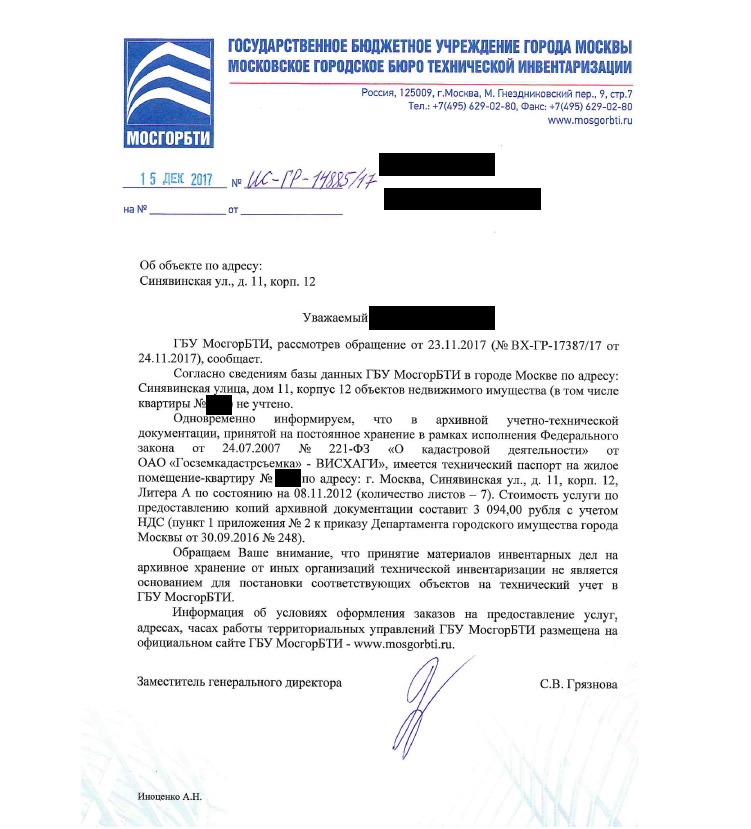 Уважаемые, форумчане, как я и обещал ранее, выкладываю ответ из МосгорБТИ о судьбе тех.паспортов на квартиры корпусов, которые инвентаризовались ОАО "Госземкадастрсъемка" - ВИСХАГИ