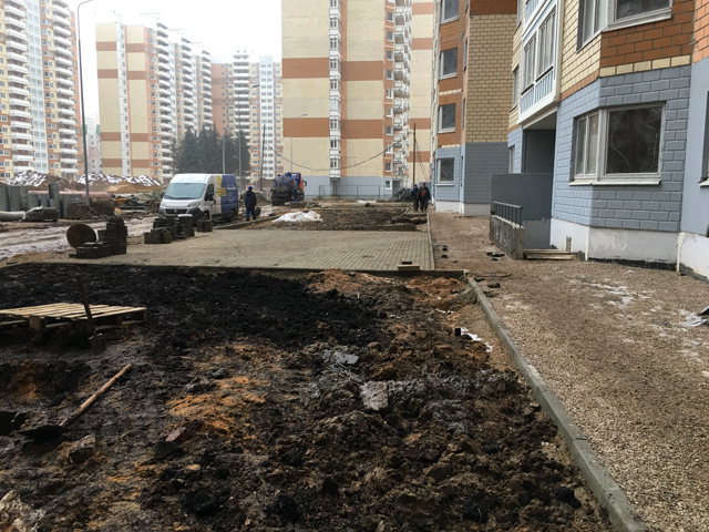 #45913Добрый вечер! Совсем хороших новостей нет. Вечерних-авралных работ на территории у 8к сегодня нет. Доп/освещение с площадки убрали, но что-то подсказывает, что с брусчаткой на этой стороне корпуса закончили - в темноте видны правильные контуры и если не показалось, то у 5го подъезда даже газоны зачернели (чернозем может завезли).