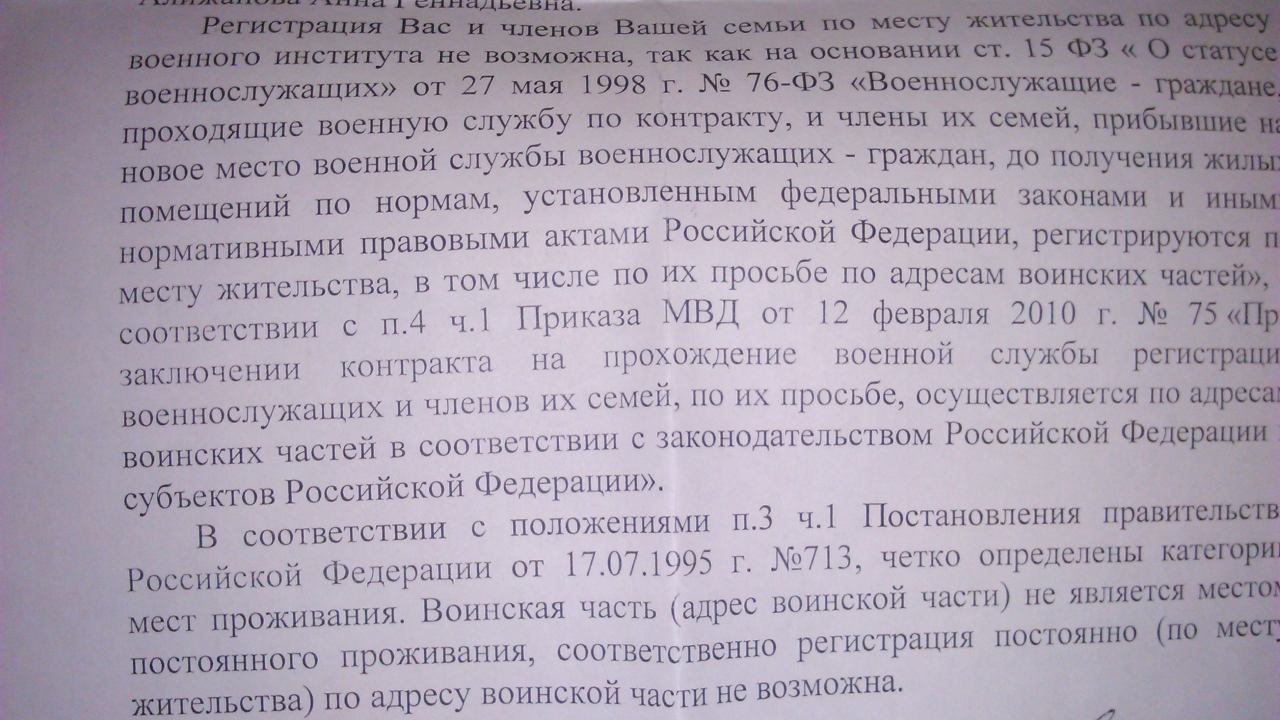 Однако местные ферзи чудесным образом зарегистрированы по месту жительства ... и даже мер никаких не принимается к восстановлению законности! Неофициальные пояснения типа "не прописались только дураки и ленивые" и "водку надо пить с правильными людьми". А почему же не отождествлять государство с лицами, его представляющими??? На гражданке такие же "фошисты"... 31.12.2015 заплатил в ПФР как ИП за себя, деньги в итоге ушли в налоговую: в налоговой переплата, в ПФР - долг... Попытки достучаться до здравого смысла "девочек" и их начальниц успеха не имели ни в одной структуре!