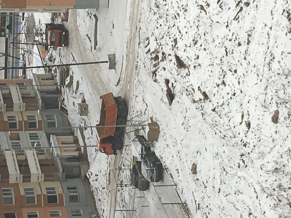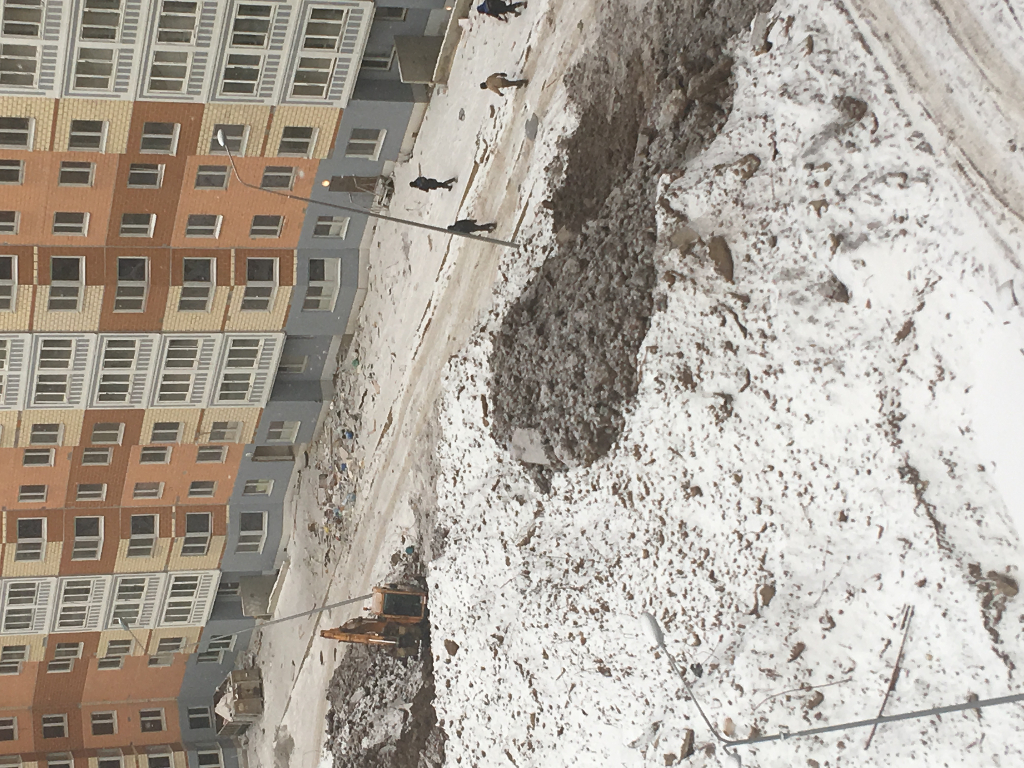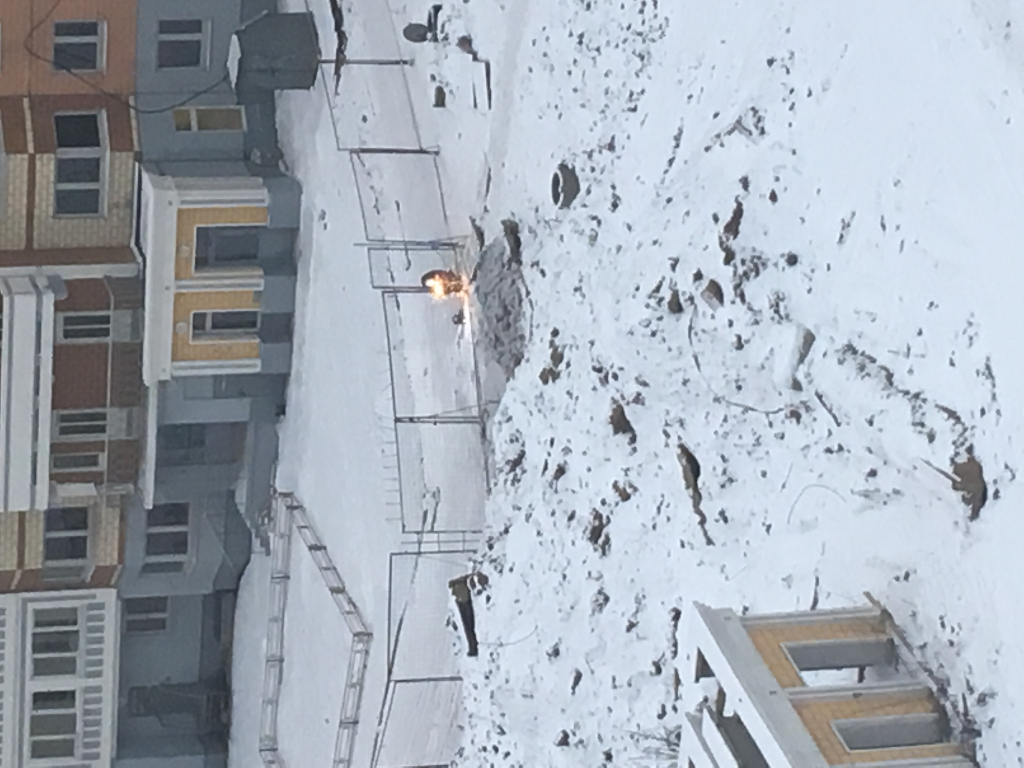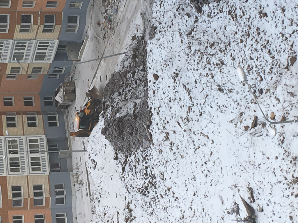 4к-7к бригада на теплотрассе, самосвалами подвозят песок для «шубы», внутри двора экскаватор тоже в работе.