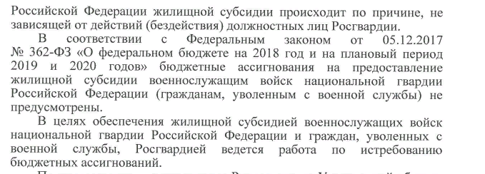 Еще цитата «В 2016 году гражданин Скубак Владимир Петрович досрочно уволен из Вооруженных Сил Российской Федерации по состоянию здоровья с правом получения жилья по линии Минобороны России. При увольнении изъявил желание получить денежную субсидию для приобретения жилого помещения и был включён в единый реестр военнослужащих, ожидающих постоянного жилья. В настоящее время проживает в служебной двухкомнатной квартире до получения денежной компенсации».