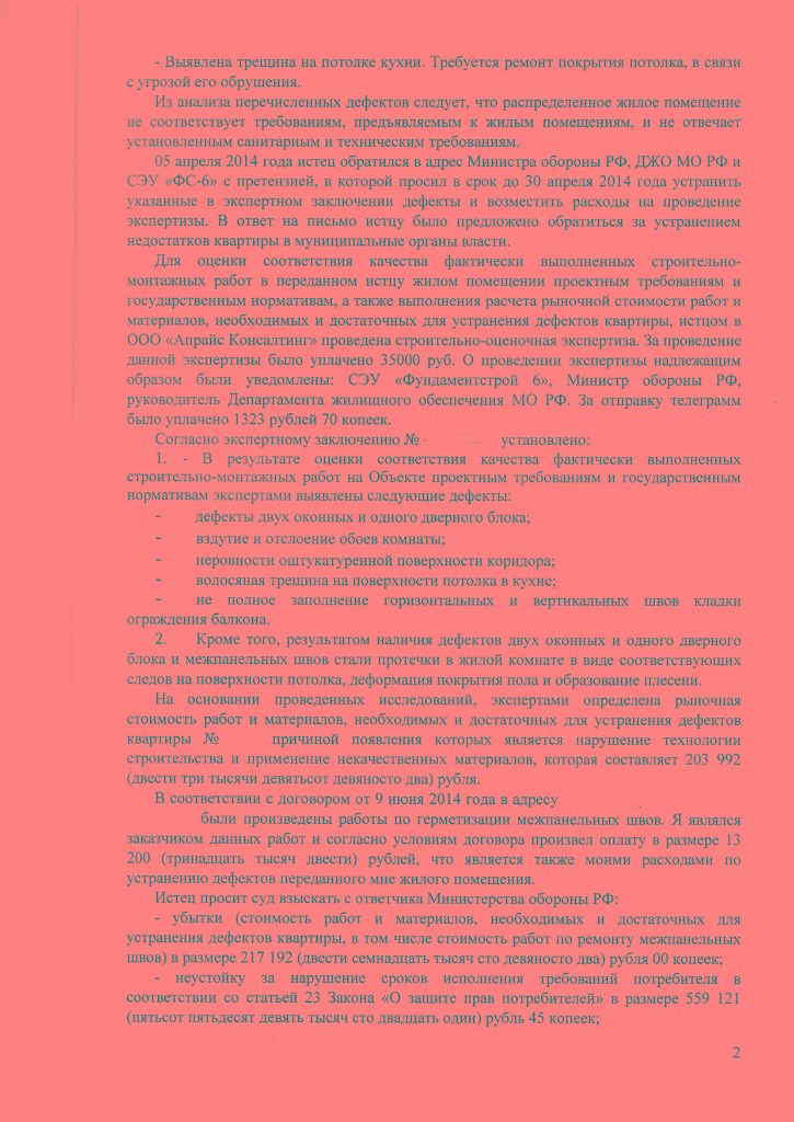 #46645Не было бы спора многие и не знали бы о таких решениях, в том числе и я. Оl75 спасибо за выложенные решения, удивляюсь тому что МО не возражало(видно там даже думать не кому)и что присудили такие суммы, они сильно завышены. Этой суммы хватит на заделку швов по всему корпусу.побольше бы таких решений