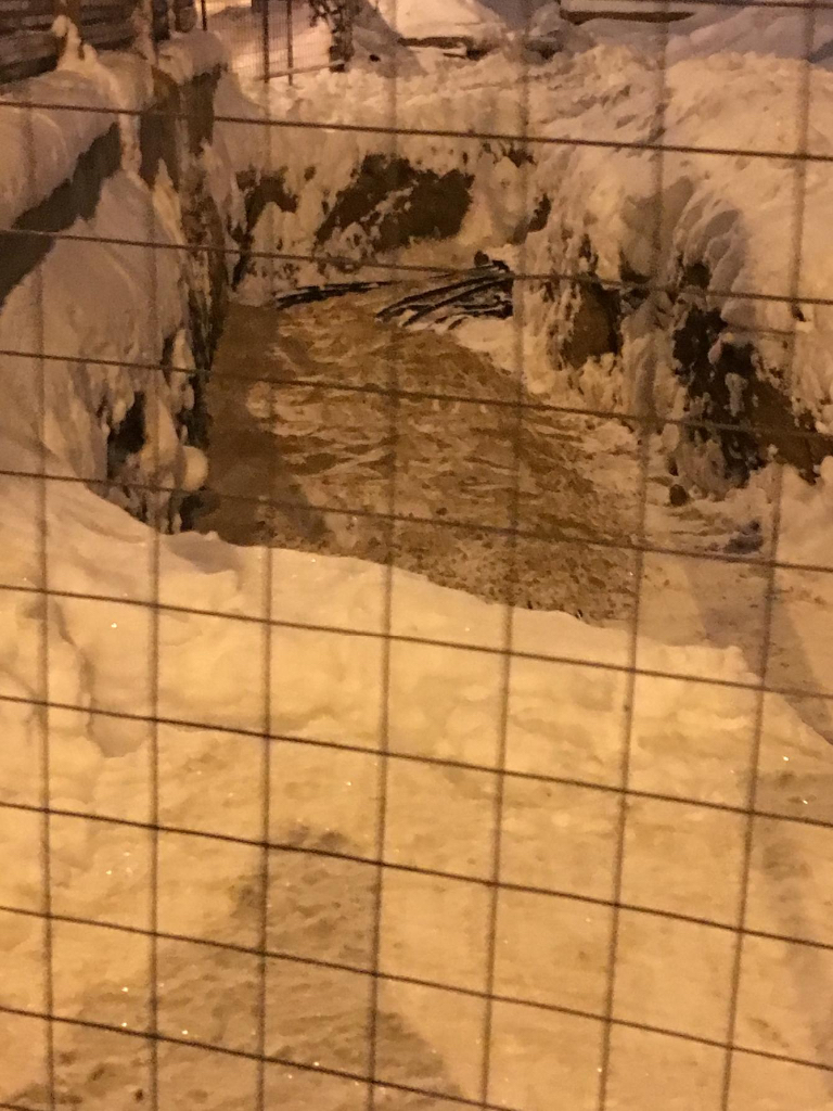 #46757За 4 корпусом теплотрасса без особых измений, продвинулись дальше, но не закрыта (пока), только снегом.