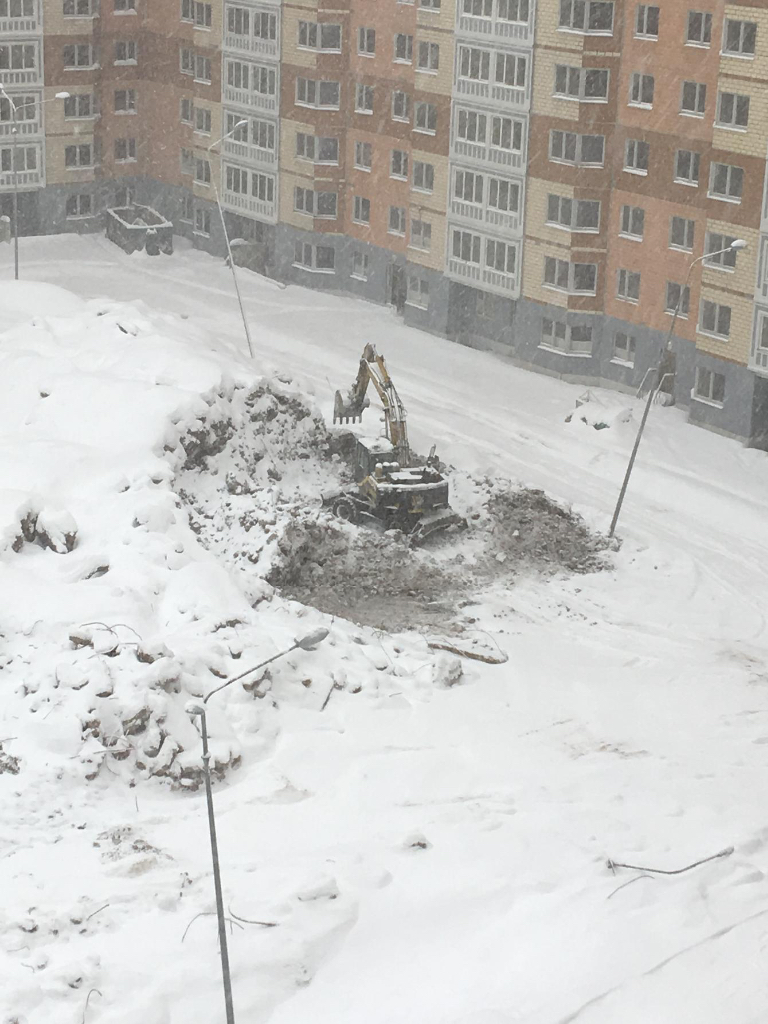 Утром как обычно открыли секции 12к, во дворе 24к работал экскаватор и небольшая бригада, а после обеда технику остановили. Специалисты работают в 7к, открыты технические подъезды 3 и 8, там же во дворе тягал грунт ещё один экскаватор, сейчас стоит. Была небольшая бригада на теплотрассе, работ не видел, может осматривали контур. Все монтажники у генподрядчика в синей форме, сегодня видел двоих в яркой оранжевой хто такие не понятно.