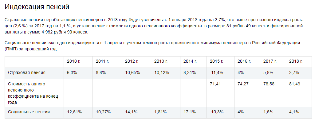 страховые (трудовые) пенсии — с 1 января 2018 года на 3,7%;
