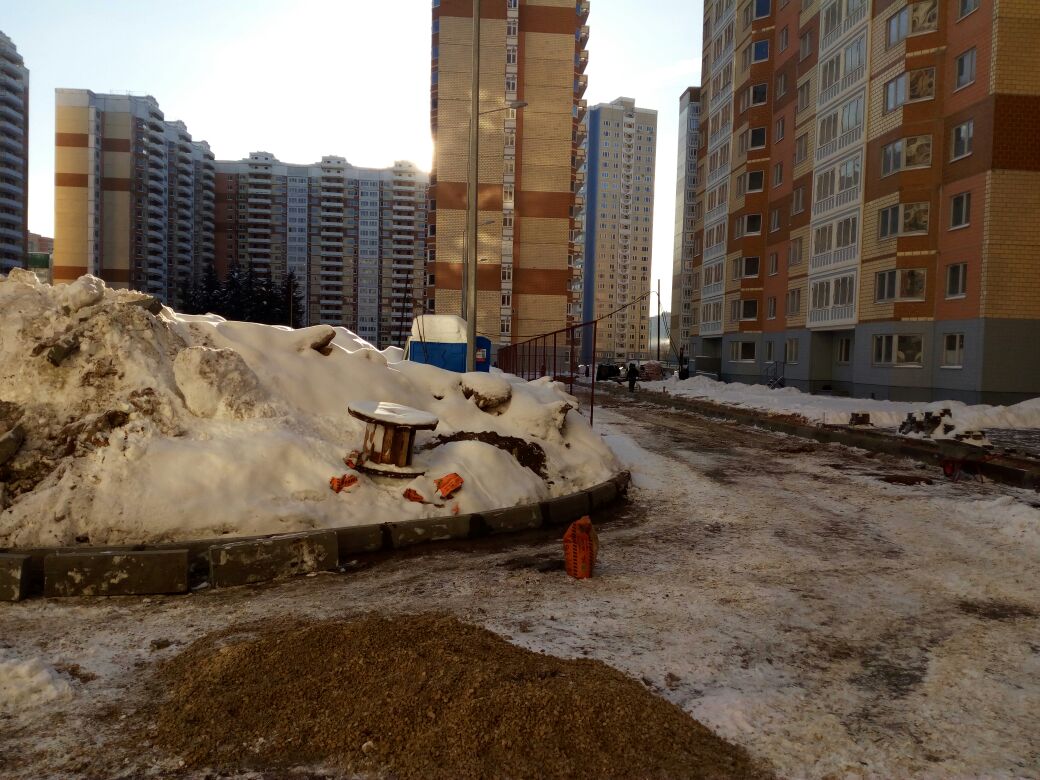 Панельные плиты даже низом вверх монтируют. Теплотрассу, самое трудоемкое в коммуникациях, всю заново перекладывают. Пешеходные дорожки уже, наверное, раз по 20 переложили у каждого корпуса. Асфальт - то кладут, то - поднимают.