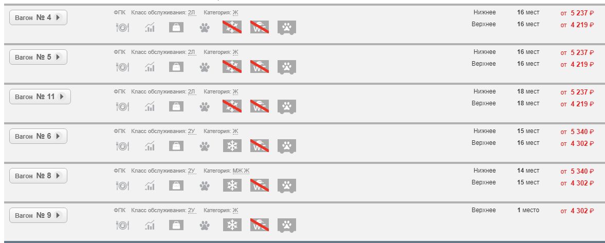 К примеру, вот здесь все вагоны без биотуалета, а половина без кондиционера. А здесь все с кондиционером и биотуалетом (коме одного) И как в кассе это узнать? Вам там покажут все варианты?