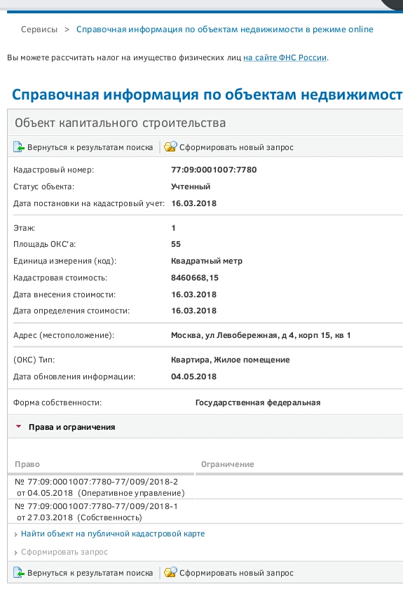 #49137Пример: На сайте росреестра набираем адрес, потом выбираем нужную квартиру, после чего нажимаем "Права и ограничения", и получаем наличие вида собственности.Не подскажите, запрос делали в Росреестр по поводу ОУ на 15 корпус?QR_BBPOST Сегодня от 4.05.18. На 15 корпус в росреестре появилось оперативное управление. Скоро заселимся