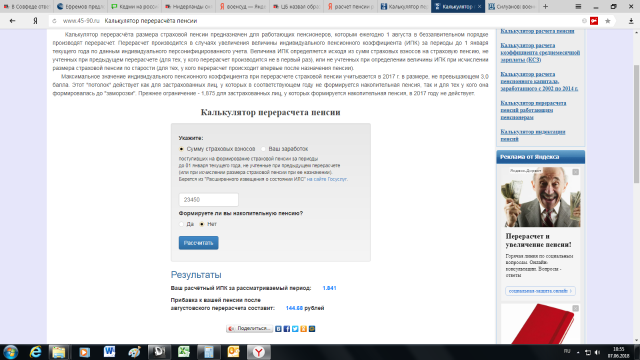 #1745[quote="КГДУ"][post]1489711[/post] Работающий пенсионер(одновременно ИП) за 2017 год получил 7 баллов. Зачли 3 балла.