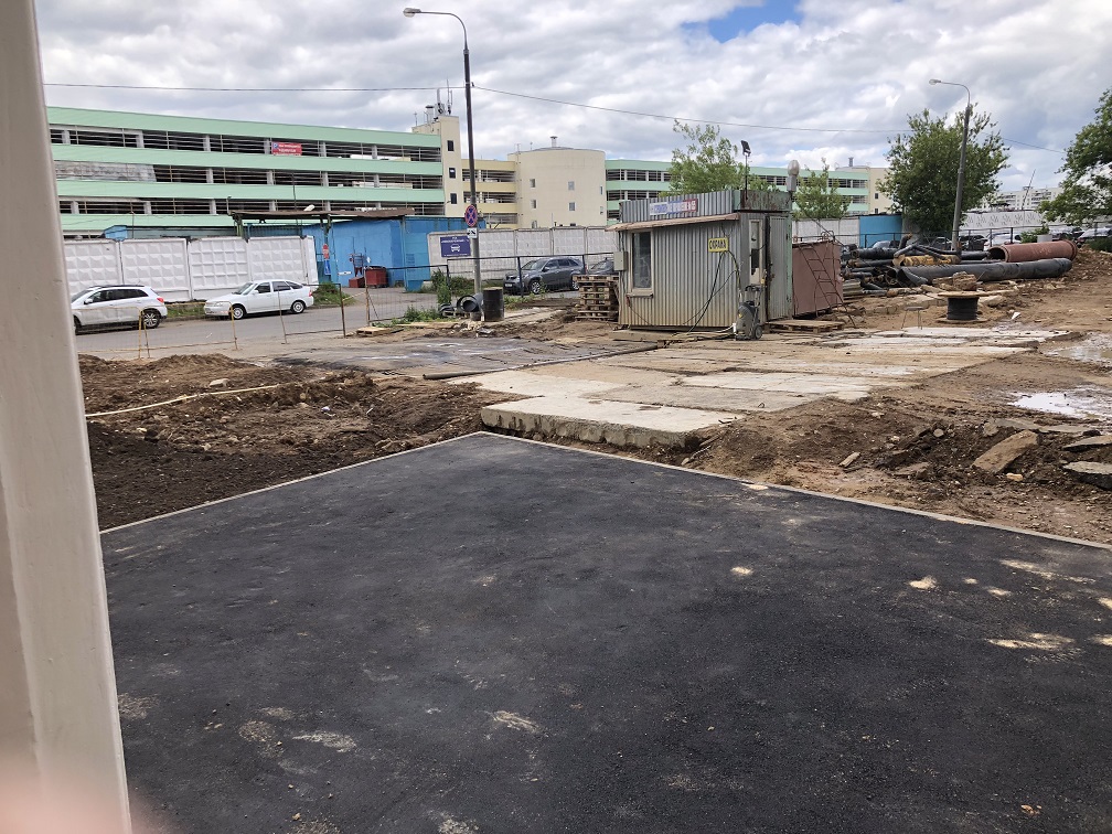- проезжая часть между 16к и 4к только выровнена, КПП охраны не демонтировано, движение тяжелой техники продолжается.