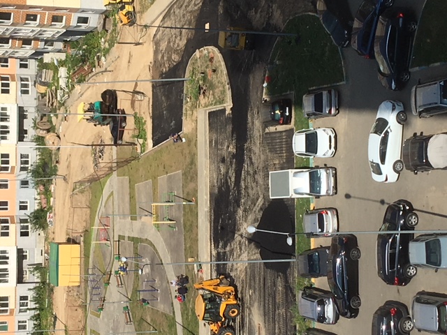 Во дворе 3-16-6к подвозят смеси, дорожники начали катать асфальт