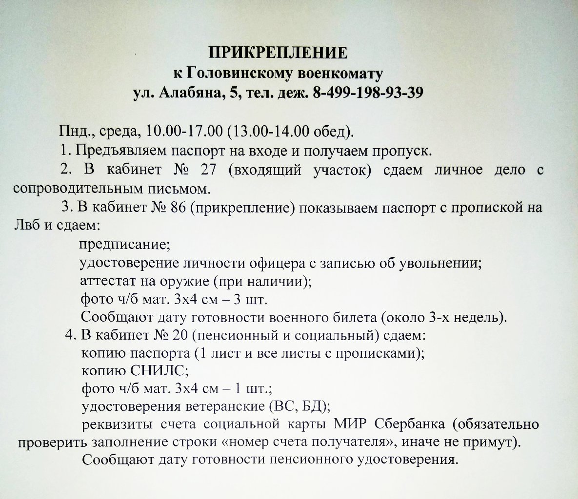 Подскажите, пожалуйста, какие справки на себя и жену нужно заказать в военкомате для прикрепления к 52 КДЦ?