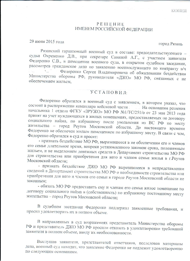 #912Видимо цели(задачи)военнослужащего и МО РФ не совпадают,в вопросах жилищного обеспечения по ИМПЖ. Исходя из решения суда-только время рассудит!QR_BBPOST Еще один знакомый пытался это сделать, итог - отказ.