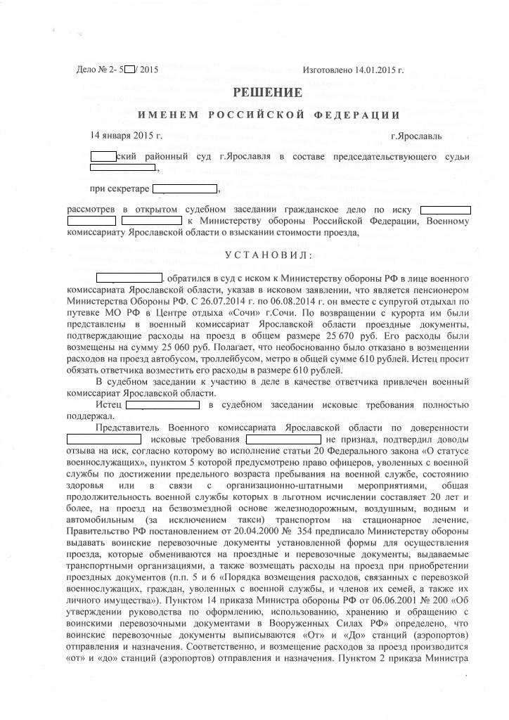 А про возмещение, что должно возмещаться- см. Приказ МО РФ № 300-2000. - В нём таких ограничений нет. В мотивировочной части решения суда, которое выше выложил Етитма, написано , что этот приказ, а точнее то, что в нём не предусмотрена выдача ВПД на все виды транспорта, не является основанием для невозмещения фактически понесённых расходов военным пенсионером по проезду в санаторий (см. 1 абзац стр.4).