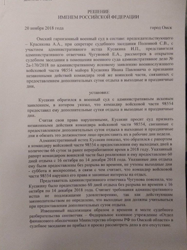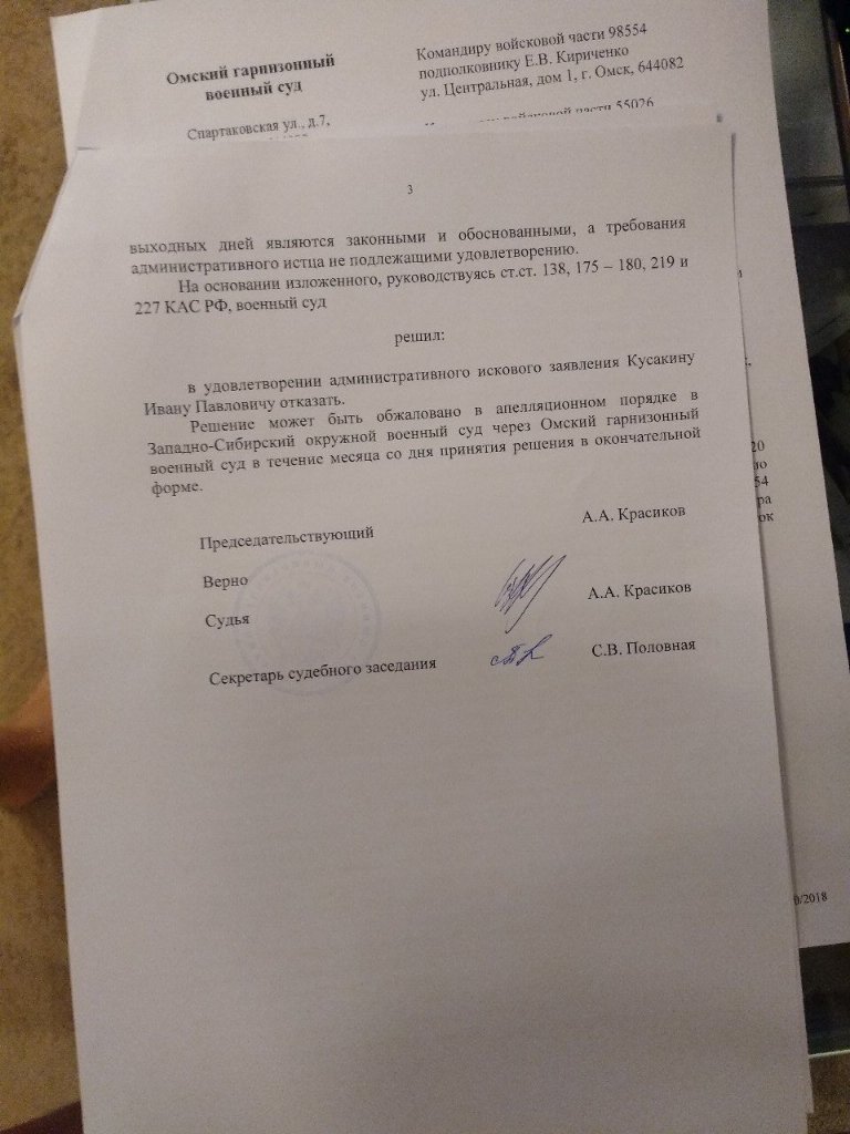 #3181если с решением будете не согласны, то суд 4 инстанции + председатель верховного + КС РФ, лично я считаю что 4 часа в наряде не должны вычитаться, от этого военнослужащий не в наряде не находится да и не факт что удастся вздремнуть.