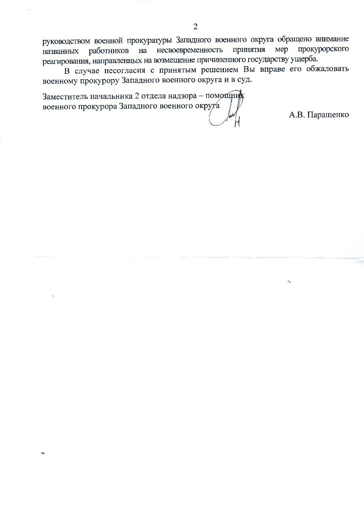 Эти клоуны включили дурака, так заместитель начальника 2 отдела надзора-помощник военного прокурора Западного военного округа А.В. Паращенко и военный прокурор Рязанского гарнизона посчитали, что сумма взыскания с Фролова В.В. ущерба, причиненного излишними денежными выплатами, произведенными мне в результате моего незаконного увольнения, составляет только 10 300 рублей.