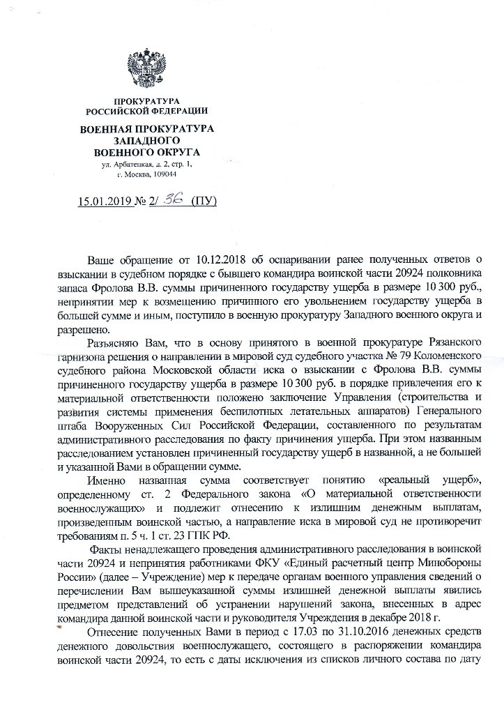QR_BBPOST По какой причине полковник Фролов В.В. не был привлечен к материальной ответственности остается только догадываться?!