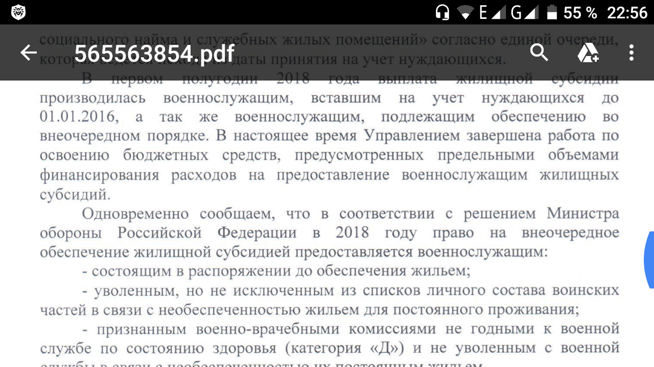 #48579ВРУЖО Камчатка стою с 22.03.16.ничего об это не слышал .А Вы откуда? Я тоже не льготник,еще в списках части стою.Здравствуйте Все! Впервые здесь. У меня такая ситуация: дата постановки февраль 2016г. ВРУЖО. Субсидию до сих пор не получил. Прри этом мои сослуживцы, уволенные и признанные в 2017 и 18 годах уже субсидию получили!!!!. (Не многодетные. Не по болезни. Т.е не льготники). Узнав об этом я написал письмо с вопросом как такое может случиться? В ответ мне написали, что РЕШЕНИЕМ министра обороны от 2017 года льготниками признаются те военнослужащие, которых не могут исключить из списков части до обеспечения жильем?!?!?!? Ни номера ни даты этого документа от Ружо добиться не могу. Можем кто нибудь может что то прояснить???
