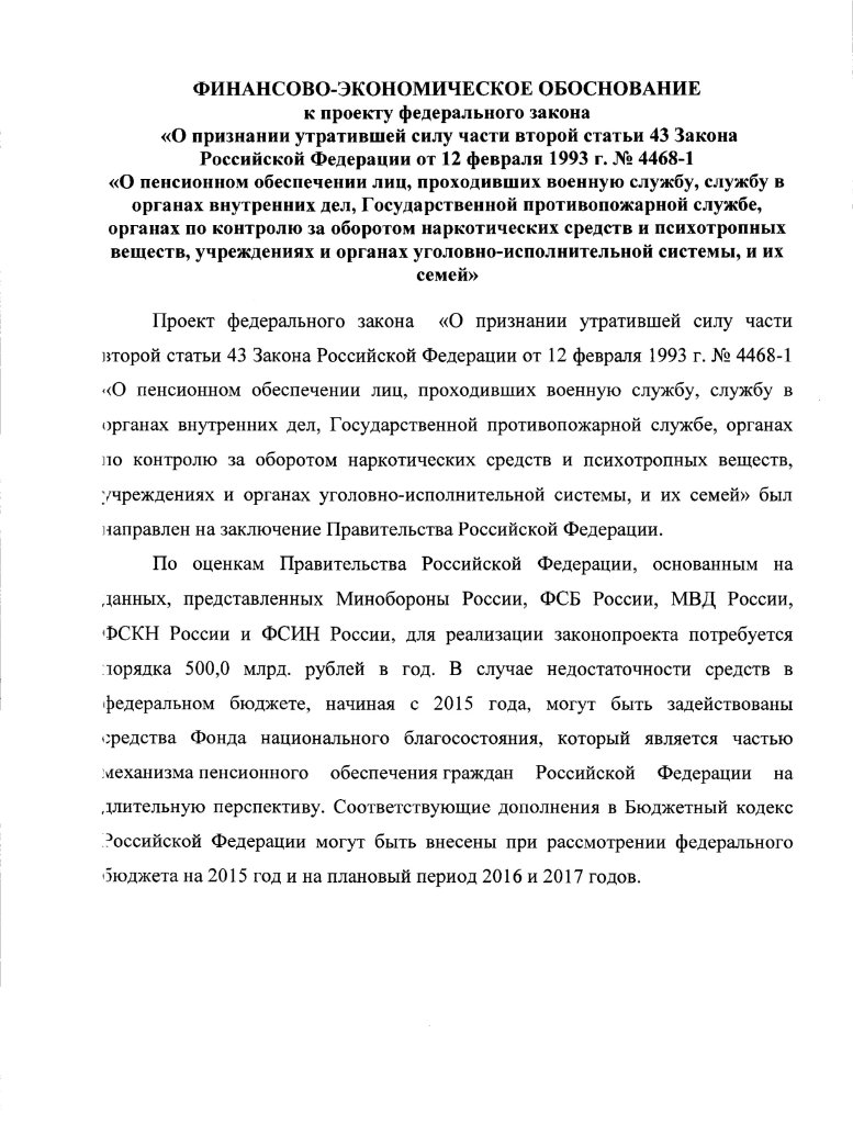 11 декабря 2018 года был принят Федеральный закон № 460-ФЗ "О приостановлении действия части второй статьи 43 закона Российской Федерации « о пенсионном обеспечении лиц, проходивших военную службу, службу в органах внутренних дел, государственной противопожарной охране, органах по контролю за оборотом наркотических средства и психотропных веществ, учреждениях и органах уголовного-исполнительной системы, войсках национальной гвардии Российской Федерации, и их семей» в связи с Федеральным законом «о Федеральном бюджете на 2019 год и на плановый период 2020 и 2021 годов»