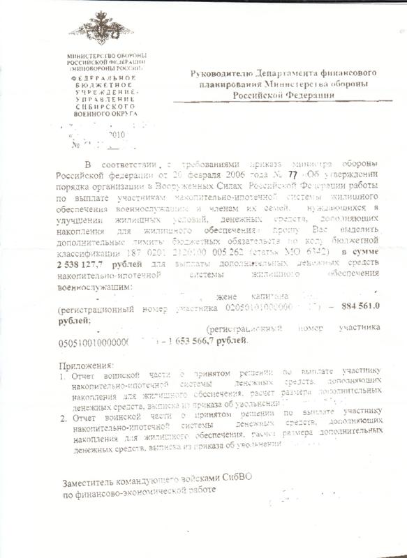 Документы на ДОПы у меня "застряли" в ФЭУ округа. После 6 месяцев ожидания и принял решение и написал письмо в интернет: Президенту, Премьеру и Министру обороны. После этого начали шевелится все инстанции которые имеют отношение к этому вопросу (Департамент, ФГУ НИС, ГлавКЭУ, ФЭУ округа, часть - от всех мне пришли письма, что будут разбираться). После этого в течении 2 месяцев мне перечислили накопления и ДОПы.
